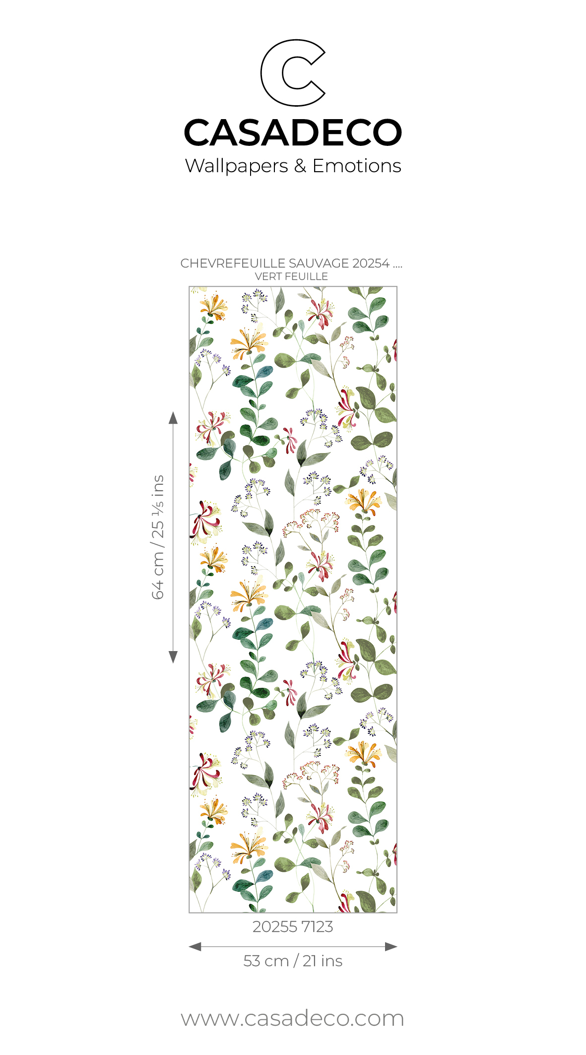 Inspired by a panoramic view from the Soliflore collection, « Chèvrefeuille sauvage » features our in-house designer's pattern, but in portrait mode. The precision of the lines and the beauty of the details are the first things that catch the eye. Here, realism is the order of the day, but that doesn't exclude a certain poetry.