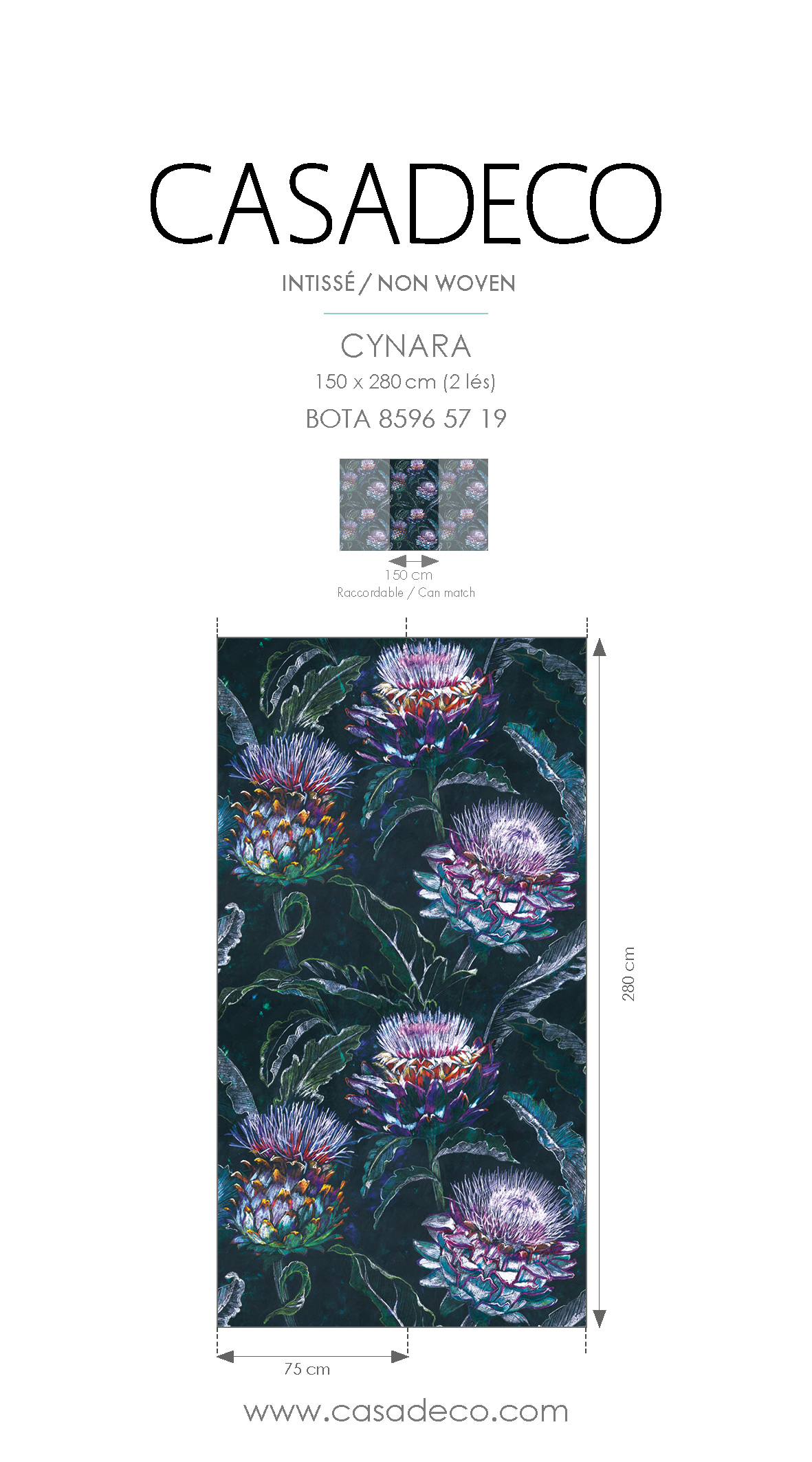 • Largeur d'un Lé 75 cm / 30 inches