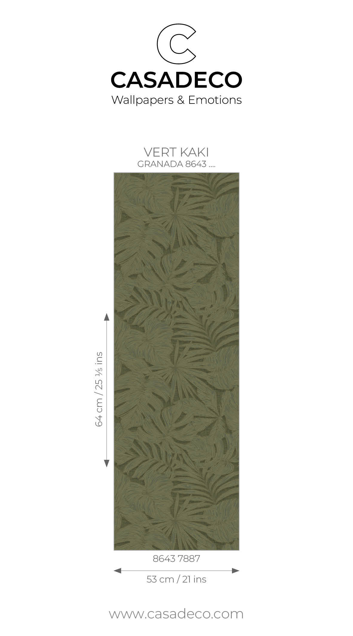 Granada incarne l’évidence des motifs intemporels : le grain dessine une palme XL sur un fond coloré épuré. Côté couleurs, la nuance caramel arbitre le duel entre couleurs douces (beige et tabac) et couleurs intenses (noir fusain et vert kaki). Match nul !