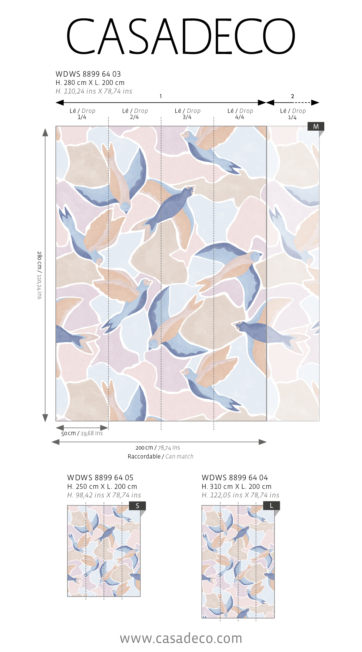 A tire-d’aile, de grands oiseaux s’élancent vers le ciel. Un panoramique d’une fluidité sans égale, portée par la douceur de ses coloris : une déclinaison bleu/rose et une vert/pêche. Nous vous recommandons d’installer cette belle envolée dans une chambre pour profiter de son mouvement, ou dans un bureau pour bouger sans se lever de sa chaise !